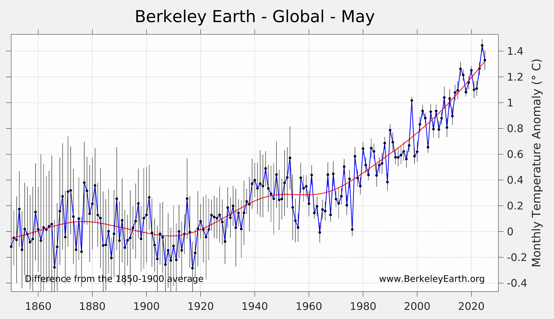 Berkeley Earth, May 2025 Temperature Update: https://berkeleyearth.org/may-2025-temperature-update/